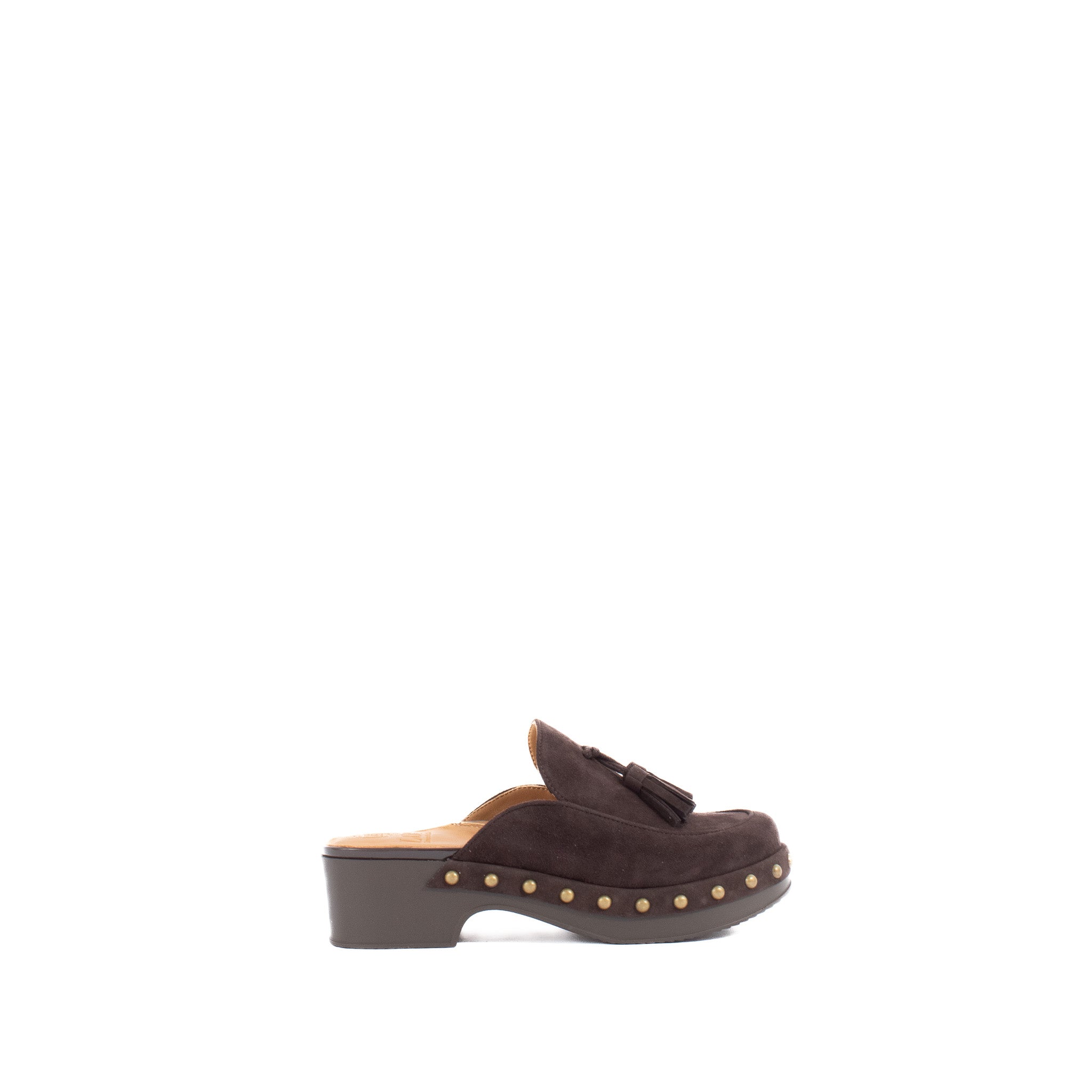 This leather round toe clog has a memory foam insole, leather lining and synthetic outsole. This slip on shoe is on a 2.25 inch heel.